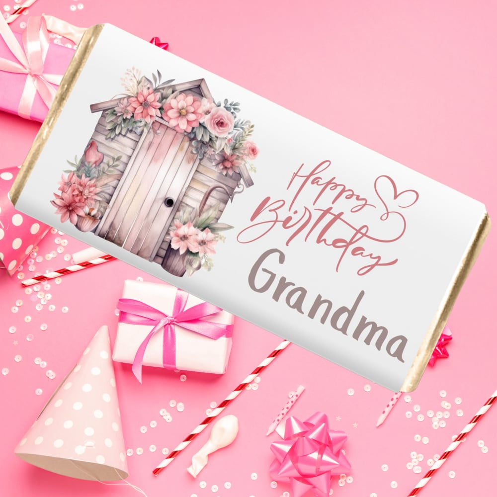 100g Personalised Milk Chocolate Bar & Matching Birthday Card - Grandma's Shed